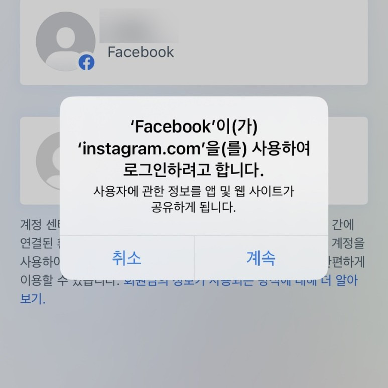 > 페이스북이랑 인스타 연결이 안돼있어서 실패