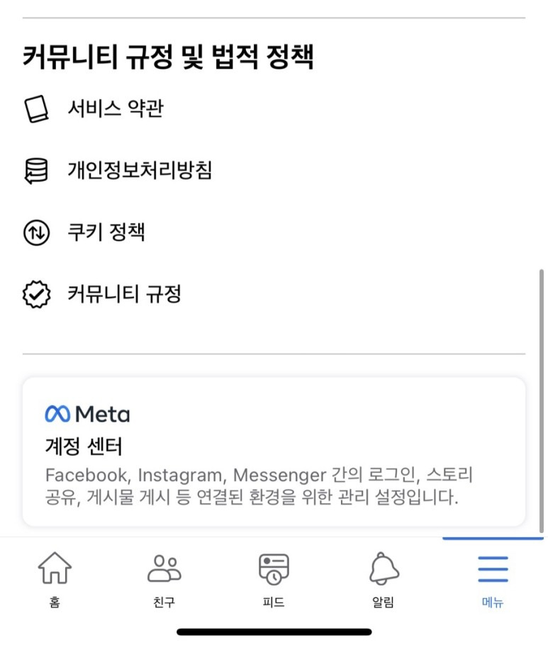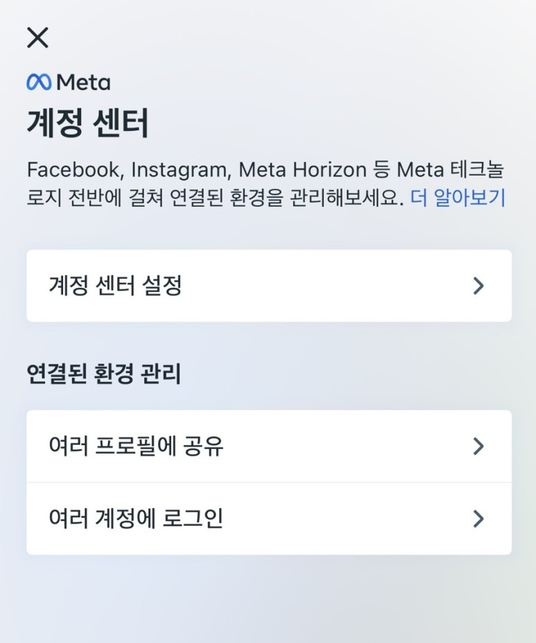메뉴 > 설정 > 맨 밑에 계정 센터 클릭