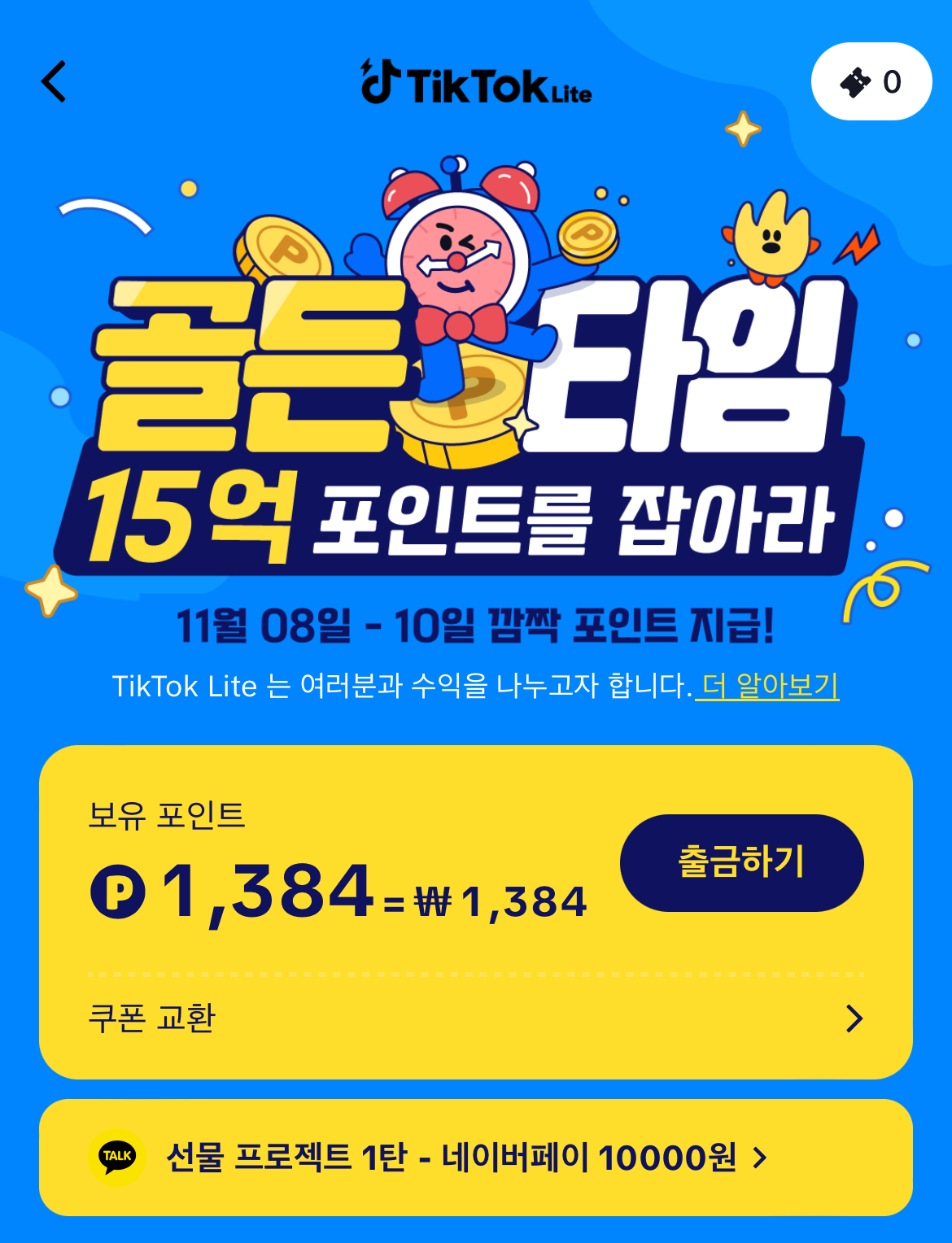 요즘 앱테크에 관심이 많아서 검색하다가 알게 된 틱톡라이트 다른 사람들은 예전부터 한 것 같은데 난 이번에 알아서 처음으로 가입했다.